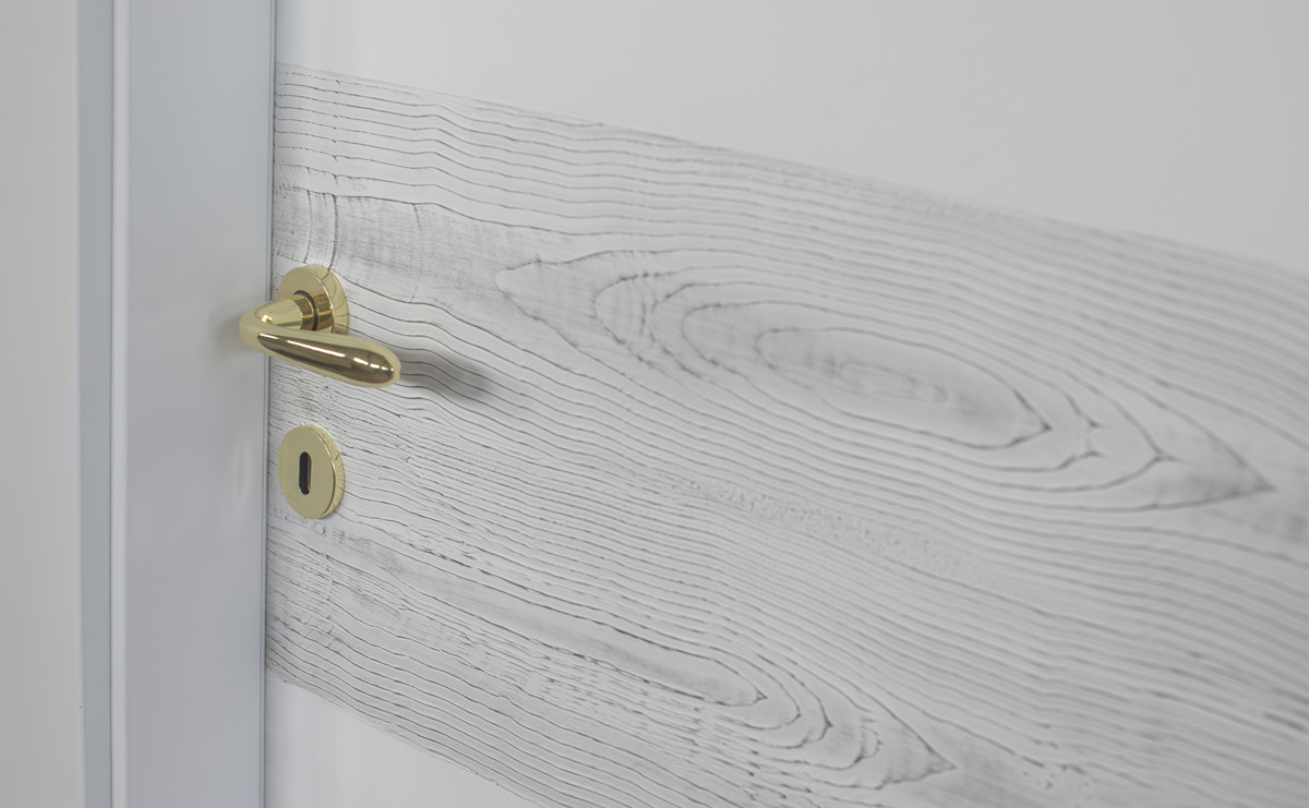 A door adorned with particular relief decorations, that can be horizontal or vertical, perceptible by touch, perfect to be mixed and matched with the style of your house.